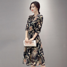 新品2016夏季女装新款韩版时尚修身显瘦中长款拼接印花长袖连衣裙