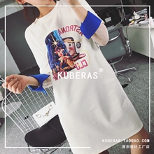 KUBERAS独家定制2017春装新款贴图拼接撞色长袖套头连衣裙卫衣女