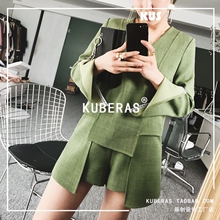 KUBERAS独家定制春装新款设计袖西装外套+无袖V领连衣裙套装女潮