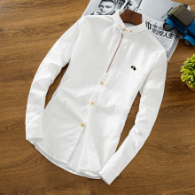 春季纯色长袖衬衫男士韩版修身休闲青少年白色衬衣潮男装衣服寸衫