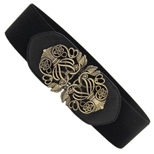 韩版宽复古女士装饰腰带 松紧华丽金色U型扣头 羽绒服腰封带