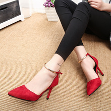 ol韩版高跟鞋细跟2016潮夏季侧空搭扣高根单鞋女铆钉尖头显瘦女鞋