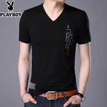 花花公子夏季新款短袖t恤男士 v领丝光棉纯色修身半袖体恤潮流T恤