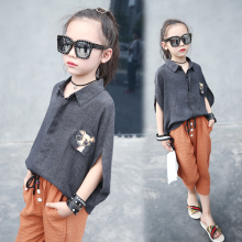 女童夏装2017新款韩版宽松衬衫潮款上衣中大童小女孩蝙蝠衫9-11岁