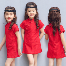 夏季女童旗袍连衣裙2017新款儿童中国风公主裙中大童表演服短袖裙