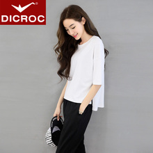 白色中袖t恤女宽松T韩版范纯色体恤夏装百搭半袖前短后长短袖上衣