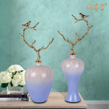 铜枝干花瓶摆件景德镇窑变釉陶瓷器家居摆件客厅玄关软装饰工艺品
