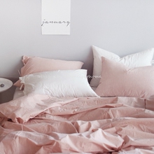 北欧全棉四件套春夏简约 日式纯色水洗棉套件 样板房酒店床品粉色