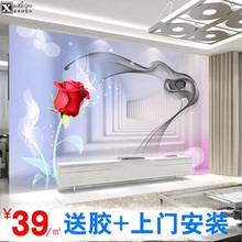 电视背景墙壁纸客厅3d立体无纺布墙纸大型壁画无缝墙布温馨玫瑰花