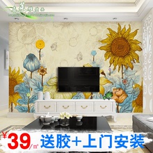 电视背景墙壁纸定制卧室客厅影视墙无纺布手绘向日葵个性创意油画