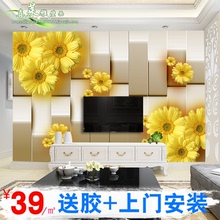 大型壁画墙纸3D无缝立体电视沙发卧室婚房背景墙布温馨花卉向日葵