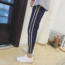 春装新款韩版男士休闲裤运动休闲条纹哈伦裤青少年时尚修身小脚裤
