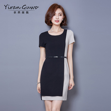 2017夏季新款女装职业连衣裙修身中长款大码拼接气质通勤裙子夏装