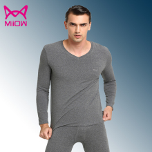 猫人保暖内衣薄款莫代尔棉男士圆领V领弹力修身秋衣秋裤打底套装