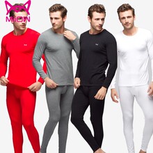 猫人保暖内衣男士圆领纯棉薄款打底秋衣秋裤美体修身新款青年套装
