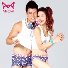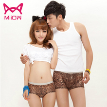 MiiOW/猫人内衣男士豹纹情侣平角内裤冰丝印花中腰女士三角裤性感