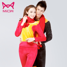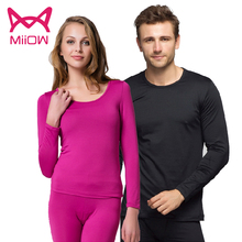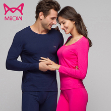 MiiOW/猫人春季保暖内衣情侣款薄款发热纤维男士圆领衣秋裤女套装
