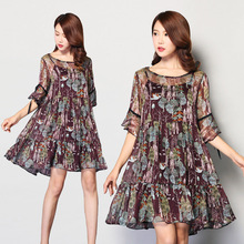 胖妹妹2017春装新款大码女装胖mm显瘦连衣裙蕾丝打底衫中长款宽松