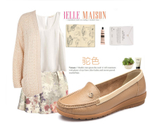 女鞋豆豆妈妈休闲平跟单鞋牛皮头层女单纯色真皮中跟奥康鞋女舒适