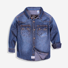 【10点秒杀】男童水洗牛仔衬衫2017春季新品中大童欧美风长袖翻领