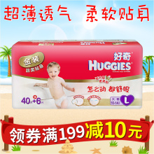 好奇金装纸尿裤L40+6片婴儿大码超薄透气干爽超柔贴身宝宝尿不湿