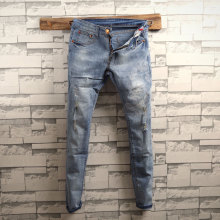 春夏季新款时尚补丁牛仔裤男 潮流破洞贴布磨边修身小脚牛仔裤 男