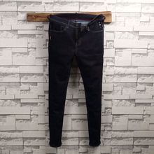 韩国水洗简约猫爪牛仔裤男 个性贴标小脚修身长裤磨边深色微弹K潮