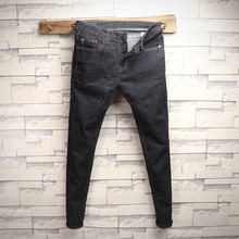 韩版显瘦牛仔裤男 修身小脚潮男铅笔裤 百搭紧身纯色青年长裤子潮