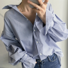 现货韩国代购正品 2017春季新款条纹情结随性自由衬衫