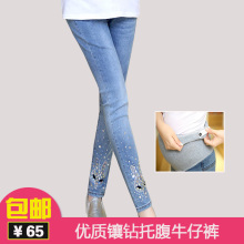 2016新款孕妇装 时尚镶钻牛仔裤春秋小脚裤孕妇牛仔弹力托腹裤春