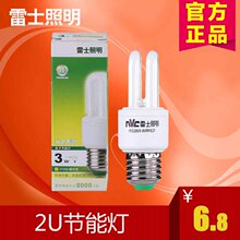 雷士照明 螺口节能灯2U直管灯泡3W 5W 8W 12W白光暖光E27三基色