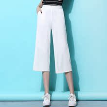 2017春夏新款女士阔腿裤韩版大码宽松女裤松紧腰七分裤休闲裤子