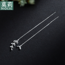 莫莉银耳线女长款设计师含羞草S925耳坠不对称耳环耳链气质耳饰