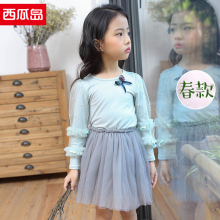 西瓜岛女童春款新品长袖连衣裙儿童韩版裙子宝宝气质网纱公主裙