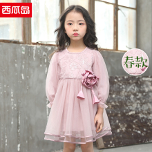 西瓜岛女童春裙宝宝长袖蕾丝连衣裙女孩裙子儿童春款纱纱裙公主裙