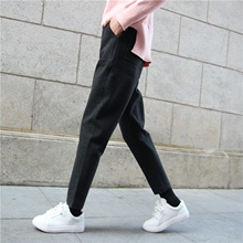 冬装新款毛呢哈伦裤女韩版九分裤子休闲裤黑色宽松显瘦百搭萝卜裤