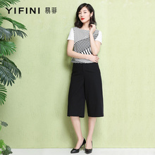 易菲夏装新款宽松显瘦t恤圆领大码短款五分袖短袖打底衫女薄