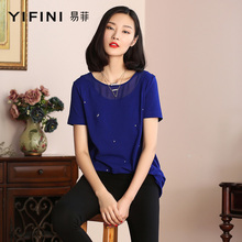 易菲2016夏装新款圆领钉钻宽松薄针织衫短袖T恤女中长款F152Z130