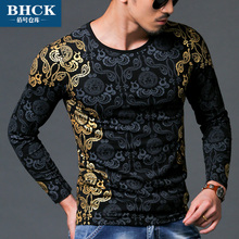 2015秋季新款圆领修身纯棉印花秋装男士长袖t恤桖打底衫潮上衣服