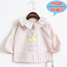 阿喜和悦2017皇冠婴儿纯棉棉麻女宝罩衣反穿衣宝宝饭衣春款小清新