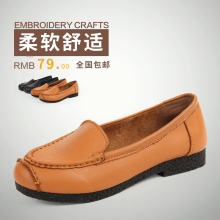 春季新品休闲平底防滑妈妈鞋 单鞋中老年中年女鞋真皮软底豆豆鞋