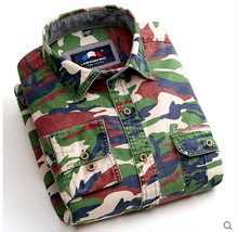 朗蒙秋季新款韩版休闲纯棉迷彩型男装潮流衬衣服修身男士长袖衬衫
