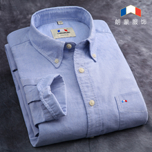 朗蒙秋季新款纯棉牛津纺男士长袖衬衫韩版男装纯色休闲白衬衣免烫