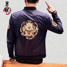 2017春季男士夹克中国风龙纹刺绣青年休闲棒球领青年潮流上衣外套