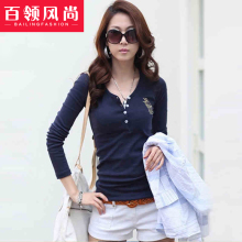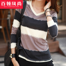 2017韩版秋装新款V领打底衫女士纯棉显瘦修身长袖T恤上衣开衫潮