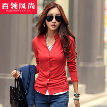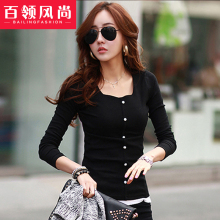 2017韩版新秋装polo领打底衫女士纯棉显瘦修身长袖T恤上衣潮