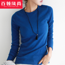 2017秋装韩版新款圆领螺纹大码修身长袖打底衫T恤女装上衣小衫潮