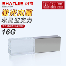 闪杰UZ101 水晶长方 16g u盘 礼品定制激光内雕发光logo亚克力