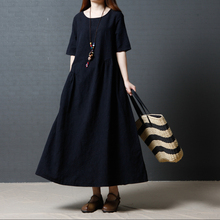 十暮棉女春夏新款2017韩版宽松大码女装时尚亚麻长款纯色连衣裙