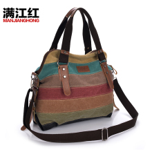 满江红正品帆布包女单肩韩版潮包休闲斜挎包包大容量女士条纹女包